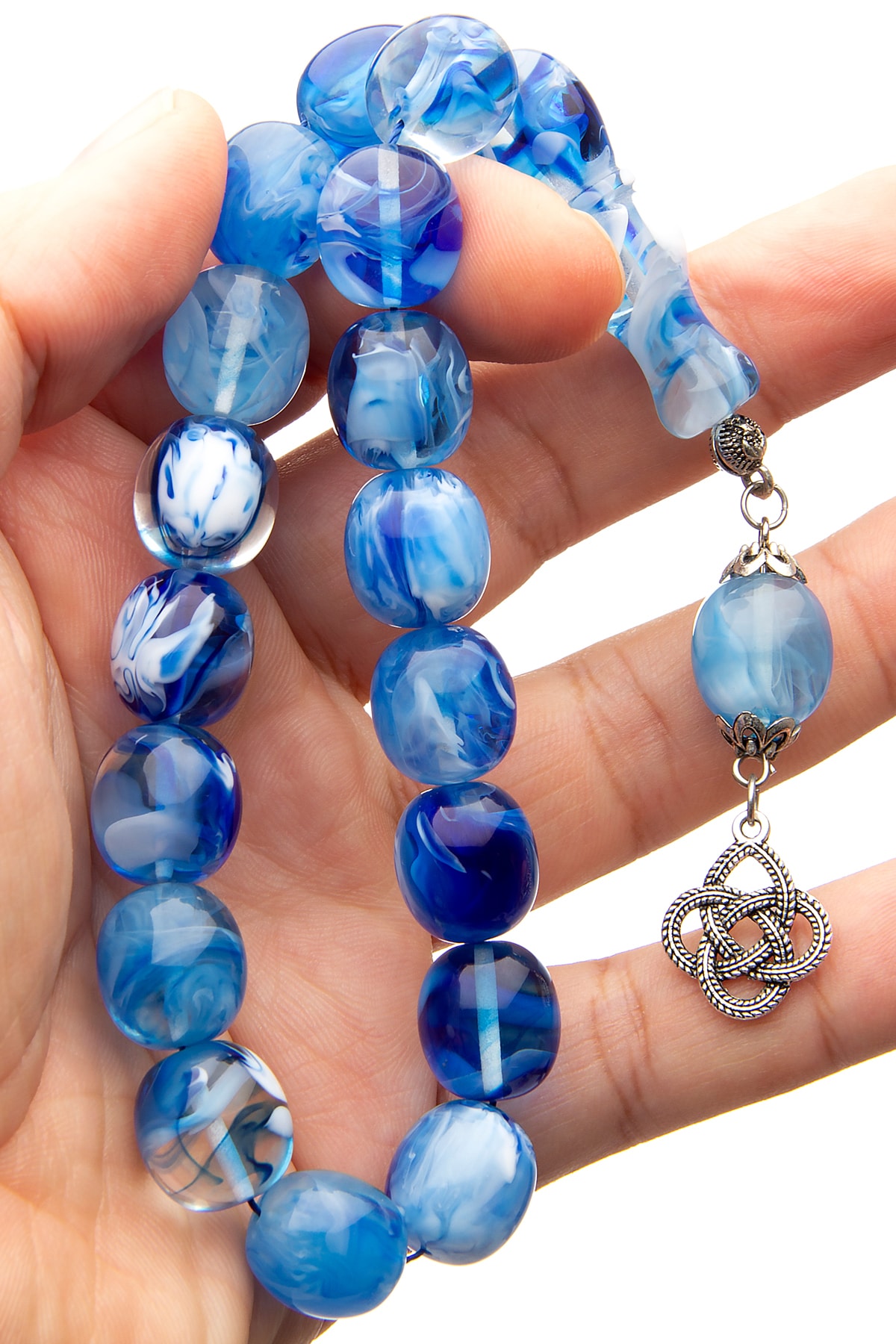 Erkek Mavi Maskot Boy Hareli Toz Kehribar Tesbih 14x15mm