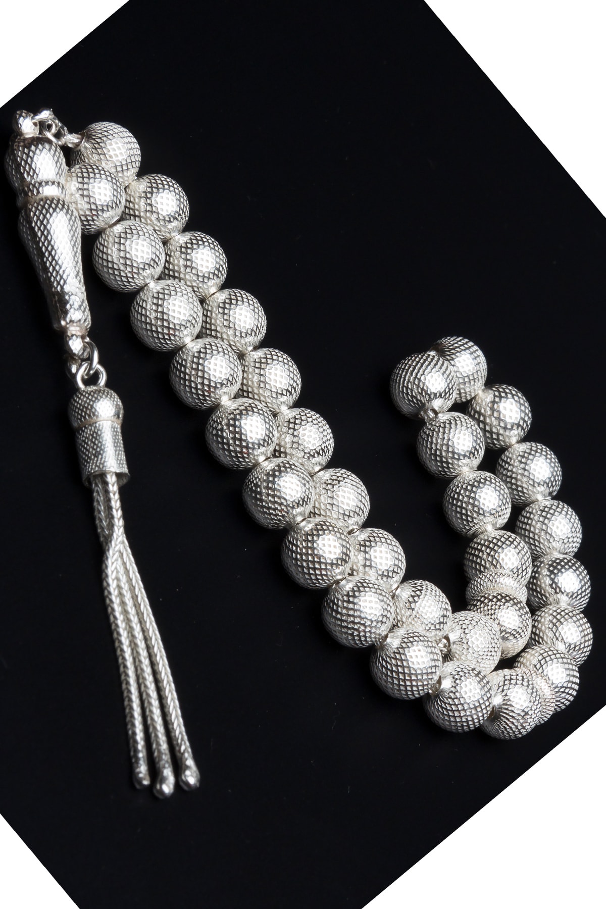 Erkek Nokta Işlemeli Küre Kesim 21 Gr Tamamı 925 Ayar Gümüş Tesbih