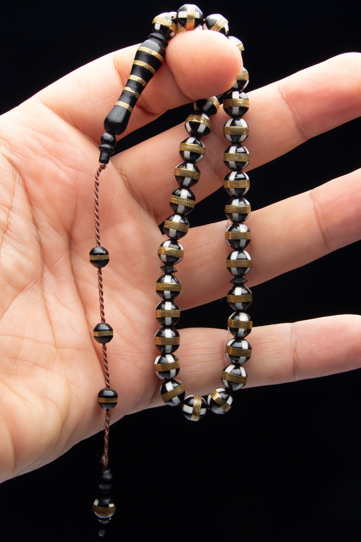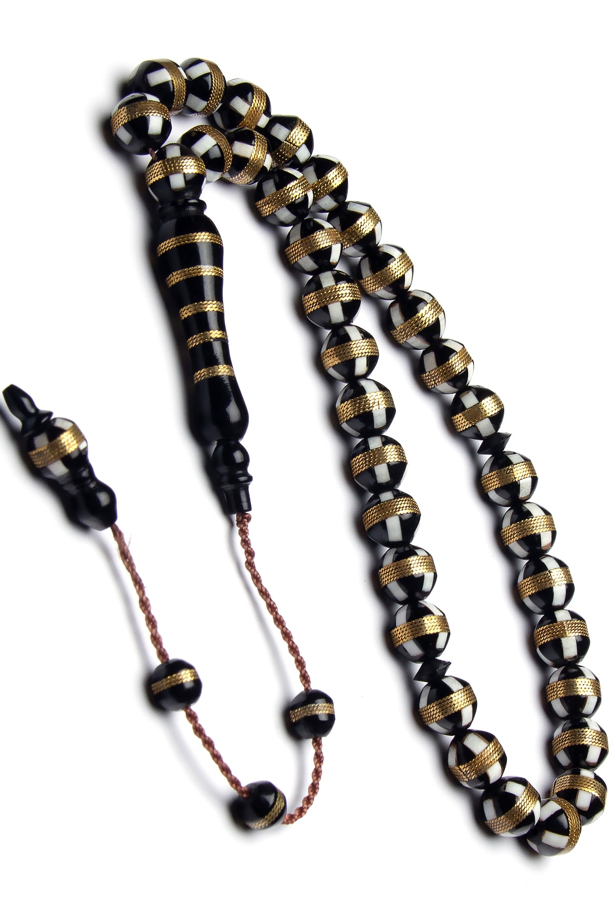 Erkek Siyah 8mm Küre Kesim Beyaz Mine İşlemeli Sarmal Kuka Tesbih