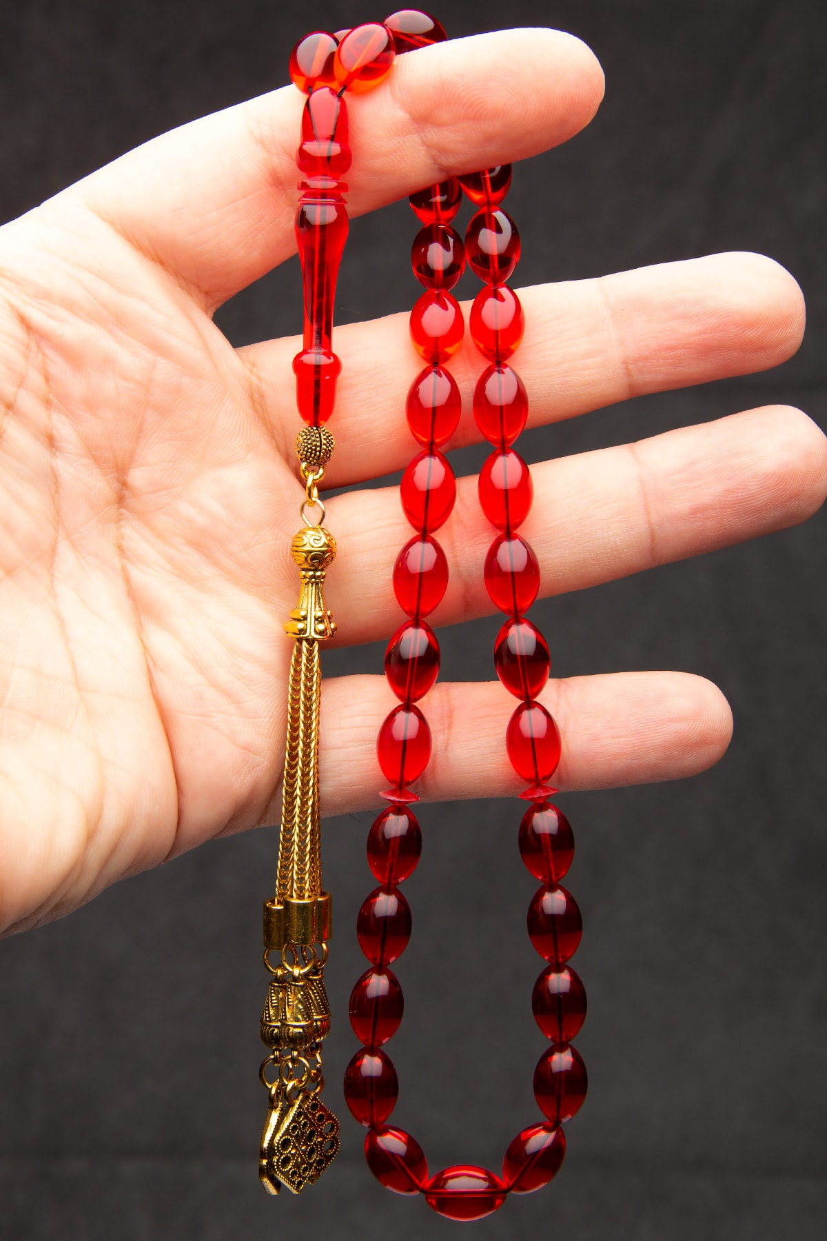 Erkek Yaldız Püsküllü 8x12mm Arpa Kesim Ateş Kırmızı Uçak Camı Tesbih