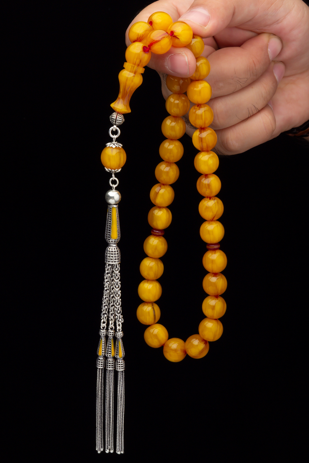 Gümüş Püskül 12x13mm Havşa Delim Osmanlı Tasarım Sıkma Kehribar Tesbih