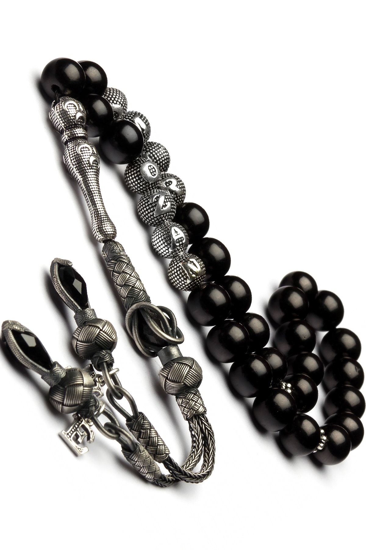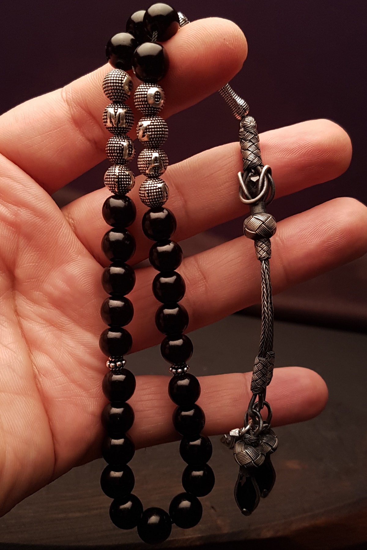 Gümüş Püsküllü Gümüş Harfli Oltu Tesbih, Isimli Oltu Tesbih