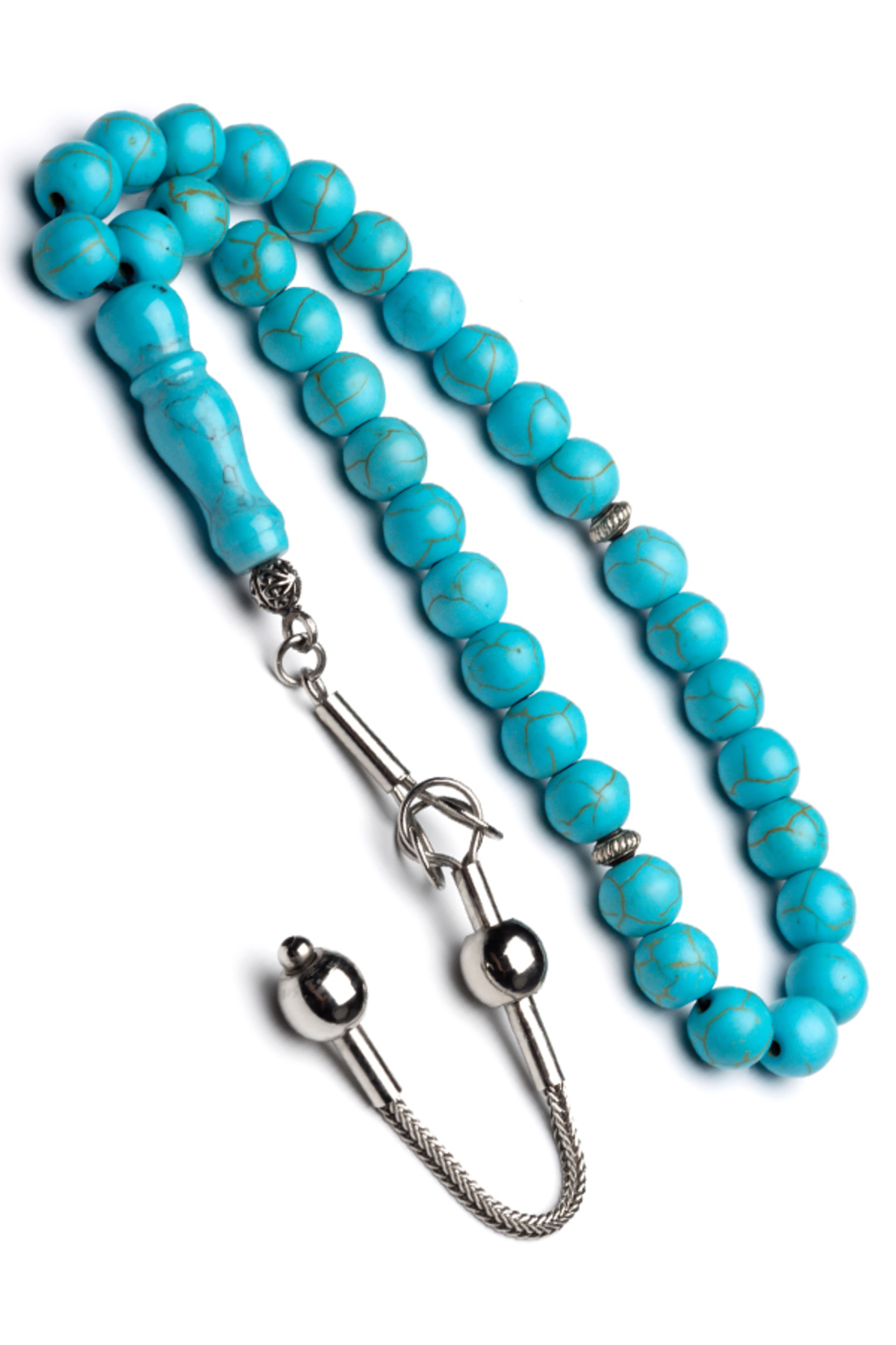 Gümüş Süleymaniye Püskül 8mm Turkuaz Doğaltaş Tesbih