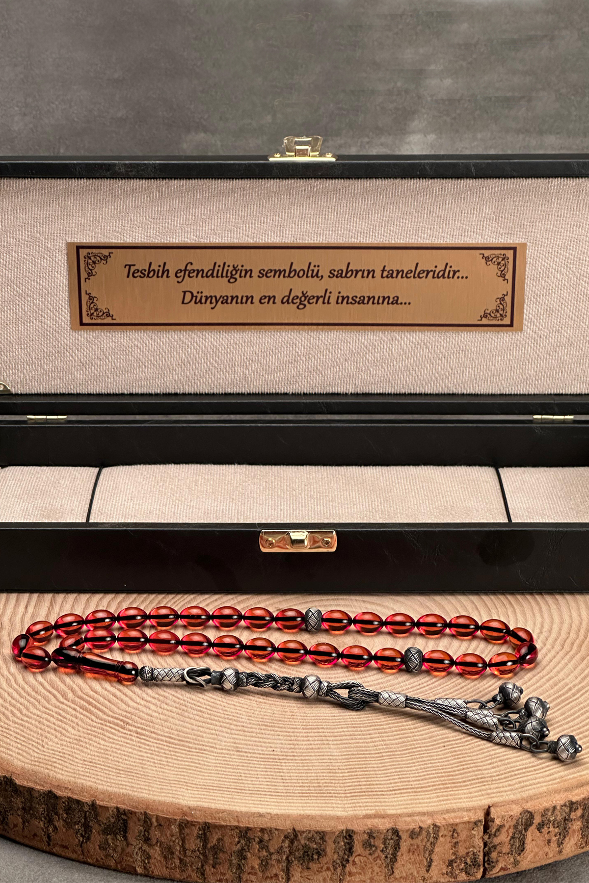 Hediyelik Tesbih, Hızır Çakırbeyli Tesbih, 8x12mm Bal Rengi Ateş Kehribar Tesbih