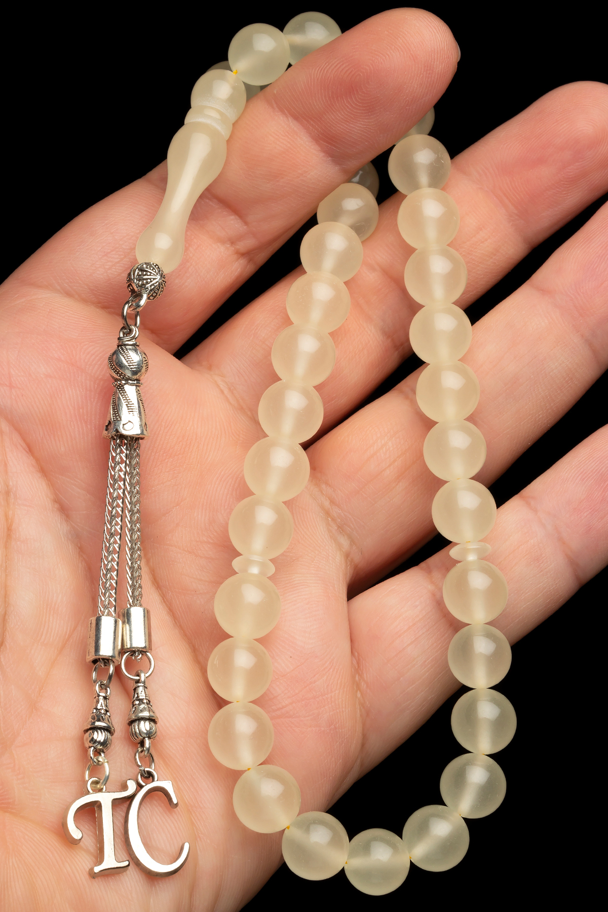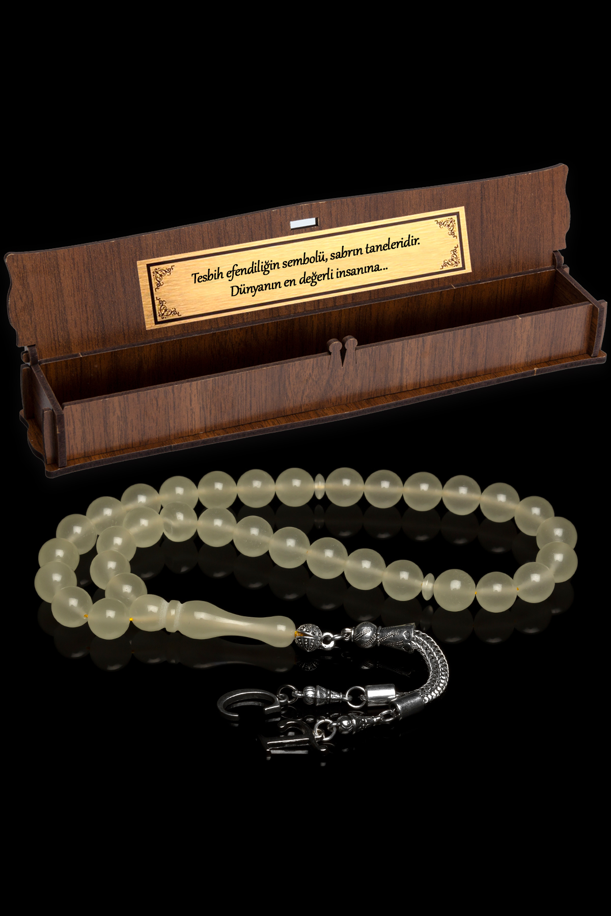 – Alpaka metal kullanılarak üretilmiş, dayanıklılığı ve şık görünümü ile dikkat çeken bir aksesuar.; – Türkiye’de yerel olarak üretilmiş olup, kalite standartlarına uygunluğu kanıtlanmış bir yapıya sahiptir.; – Gümüş kaplama malzemesi sayesinde hem parlaklık kazandırırken hem de uzun ömürlü kullanım sunar.; – Doğal kehribar taşları ile zenginleştirilmiş tasarım, her tür kıyafetle kolayca kombinlenebilirliği sağlar.; – Sade deseniyle zamansız bir estetik anlayışını yansıtır; günlük veya özel günlerde rahatlıkla tercih edilebilir.; – Özel harfler takılabilme özelliği ile isim yazılı kutusuyla kişiselleştirilebilen bu tespih seti, hediye olarak da mükemmel bir seçenektir.; İsimli kutusu ise sevdikleriniz için unutulmaz hatıralara dönüşebilir.