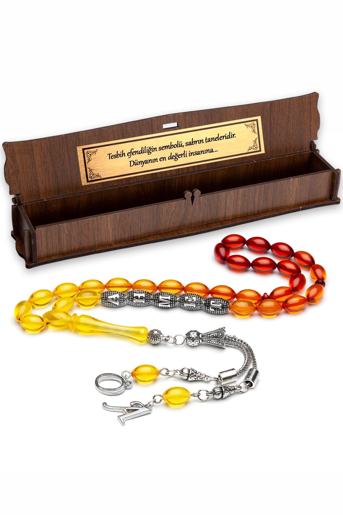Kişiye Özel Isimli Kehribar Tespih + İsimli Kutu + İsimli Tespih