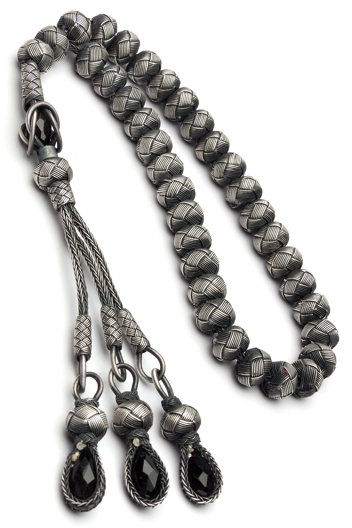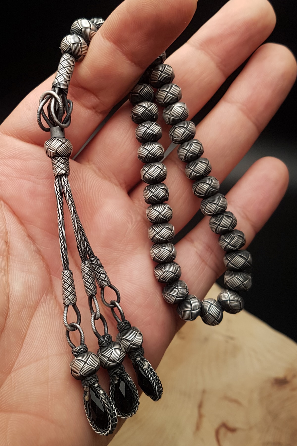 Oksit Kaplama Siyah Zirkon Taşlı 42 Gr Tamamı 1000 Ayar Gümüş Kazaziye Tesbih