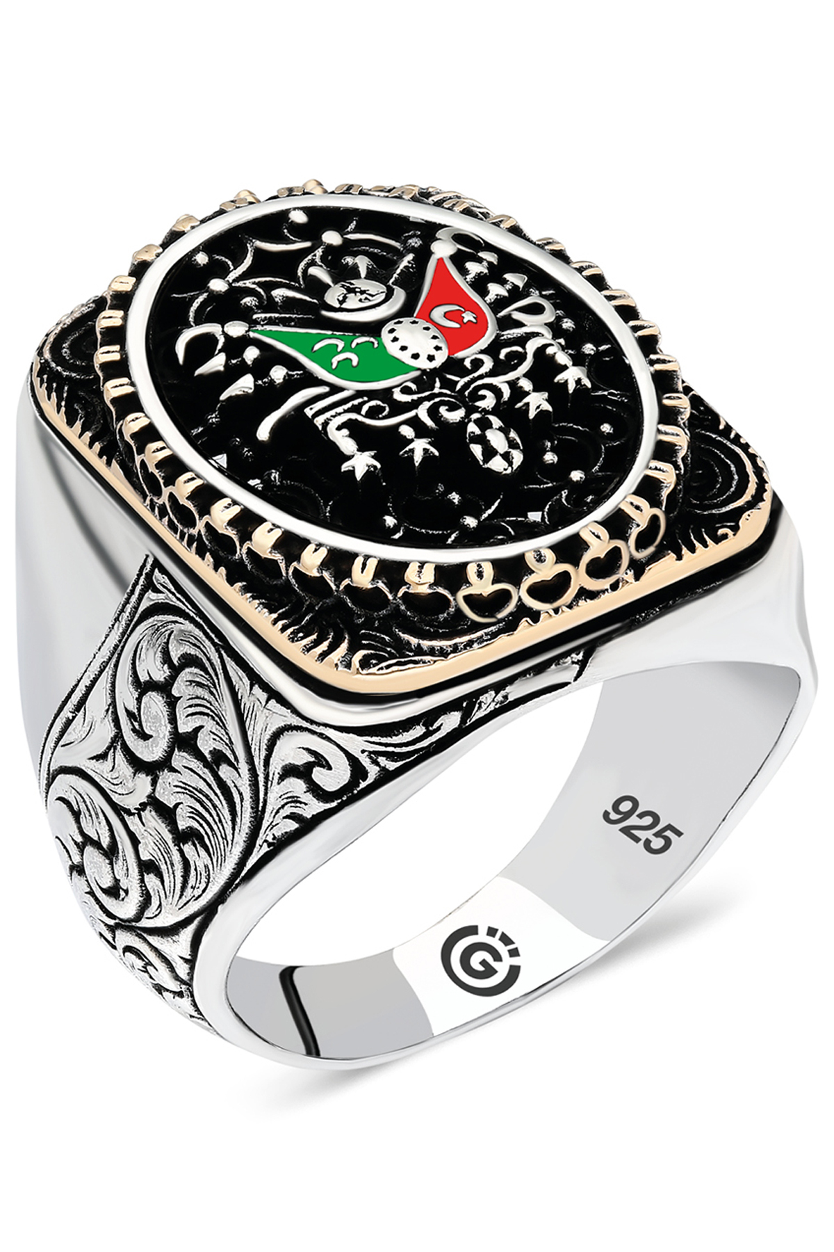 Osmanlı Devlet Armalı Yüzük Erkek Yüzük 925 Ayar Gümüş Yüzük
