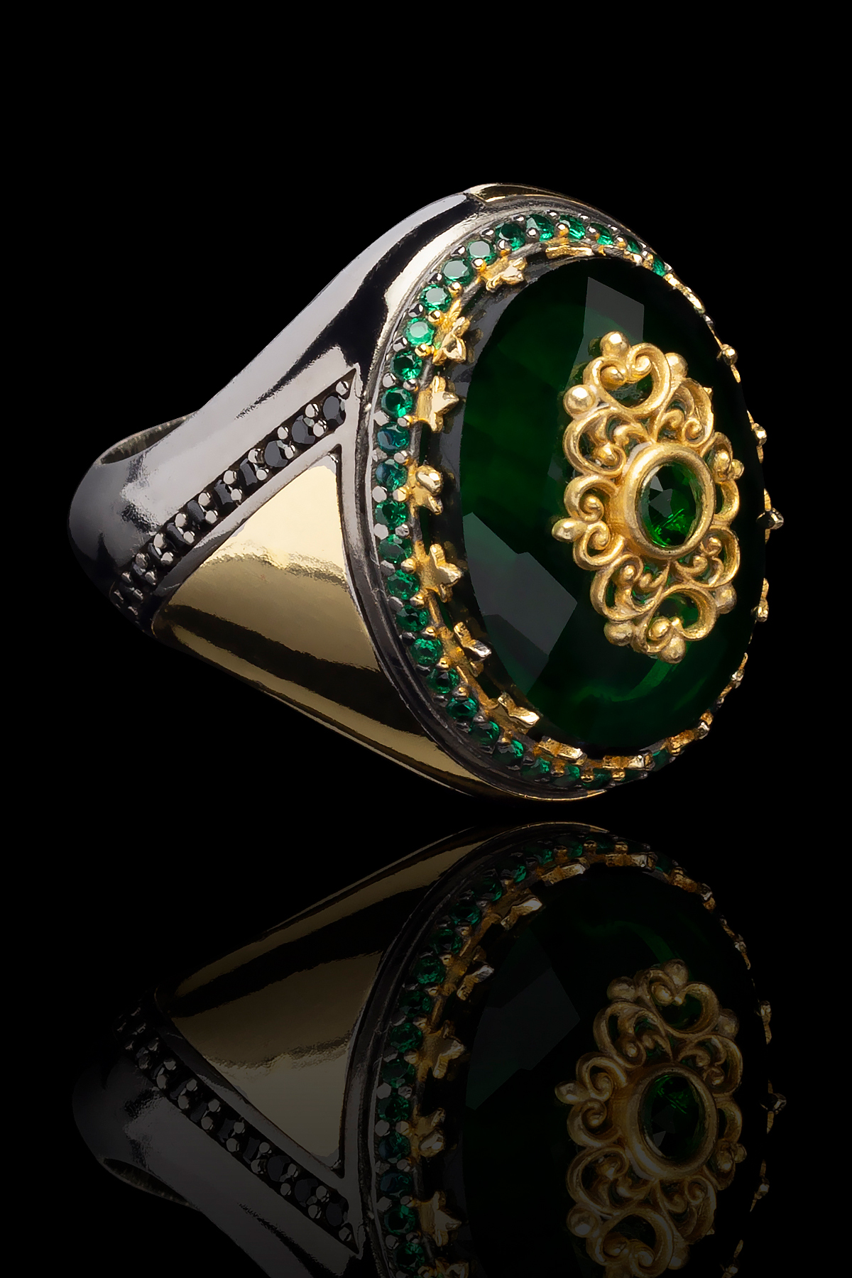 Rodaj Kaplama Yeşil Zirkon Taşlı Yüzük Erkek Yüzük 925 Ayar Gümüş Yüzük