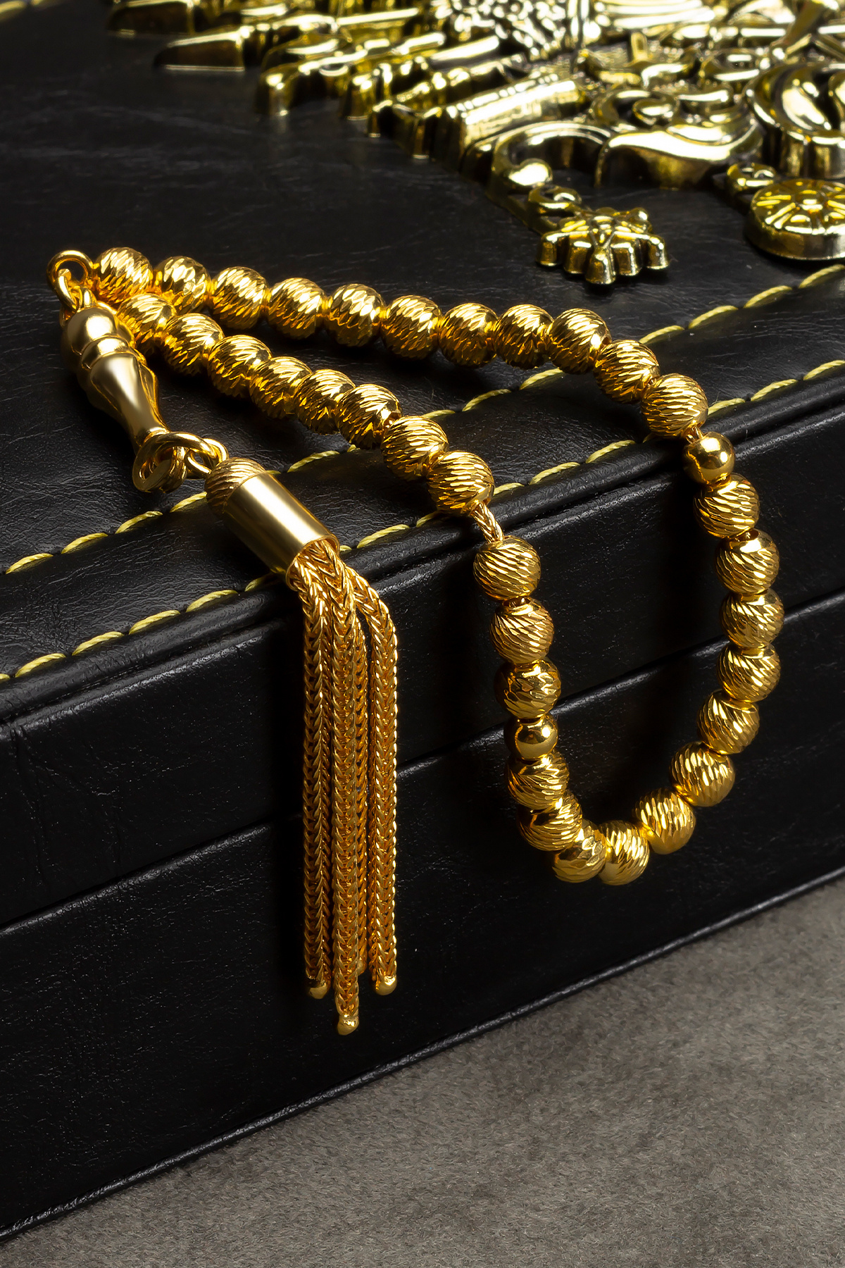 Sertifikalı 22K Altın Kaplama Minik Boy Gümüş Tespih 4.5x5mm 12 gr Küre Kesim