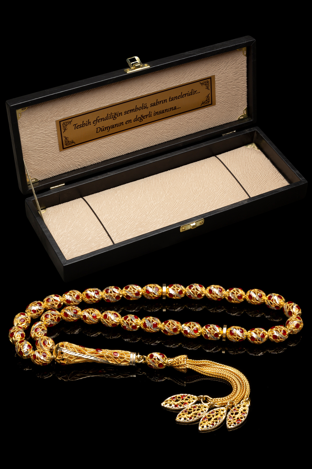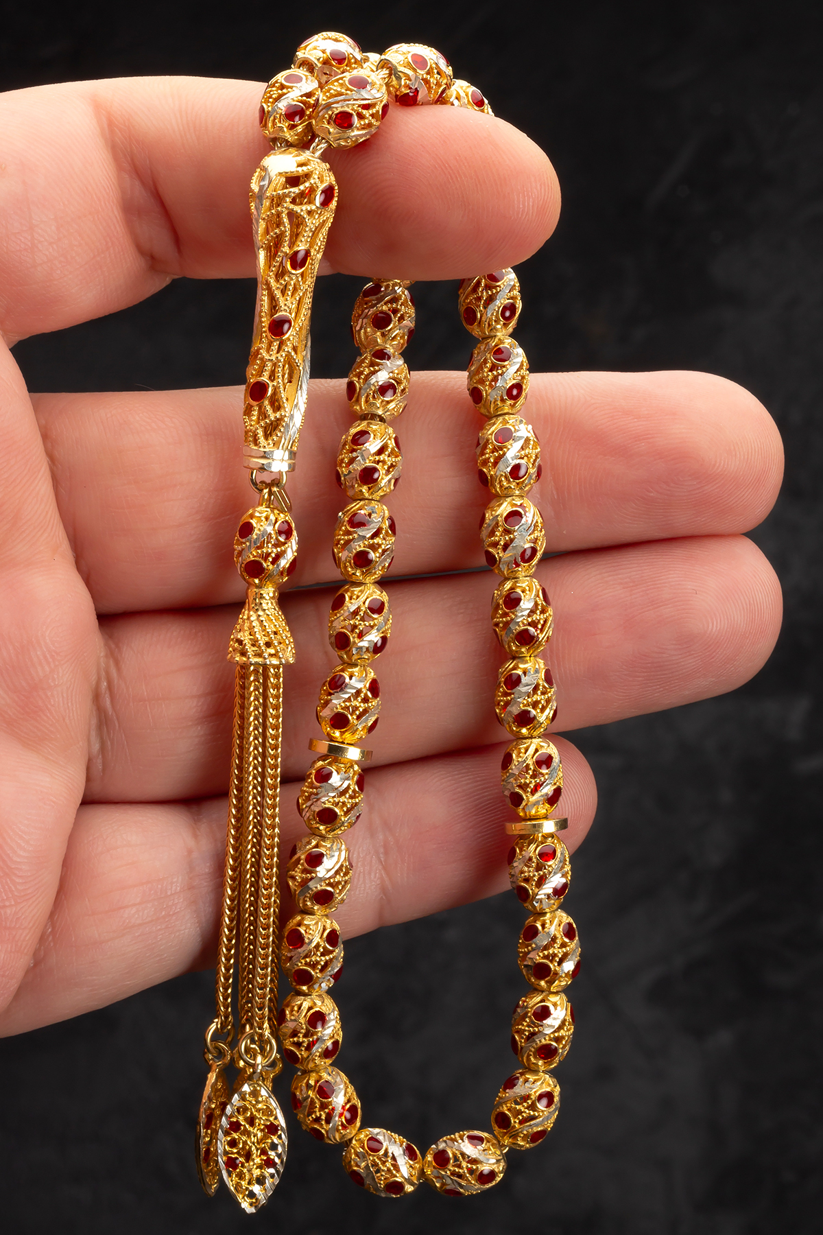 Sertifikalı 24K Altın Kaplama Gümüş Tespih 6.5x9mm 36Gr Arpa Kesim