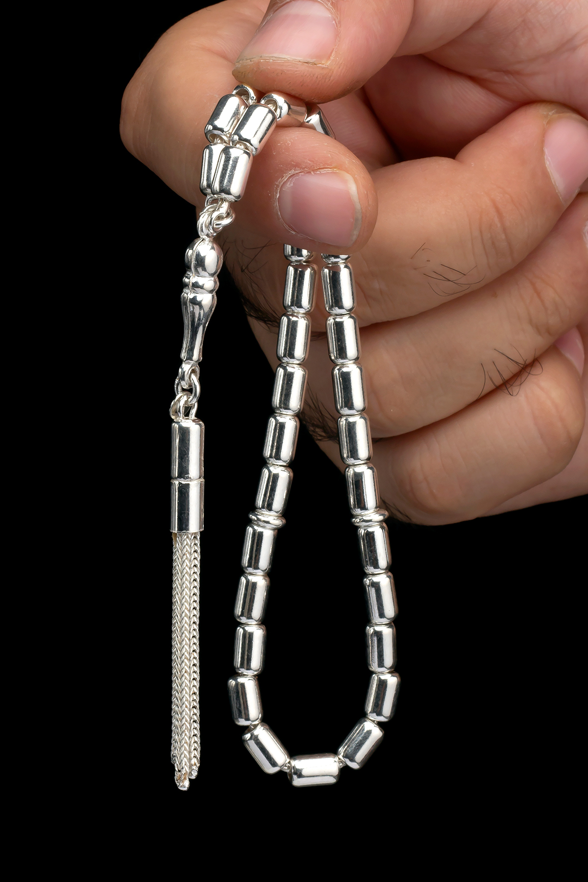 Sertifikalı Erkek Gümüş Tespih 5x8mm 20Gr Kapsül Kesim