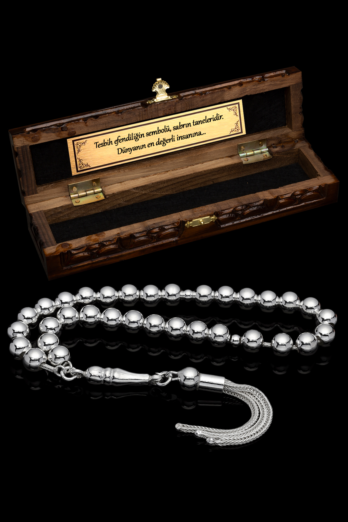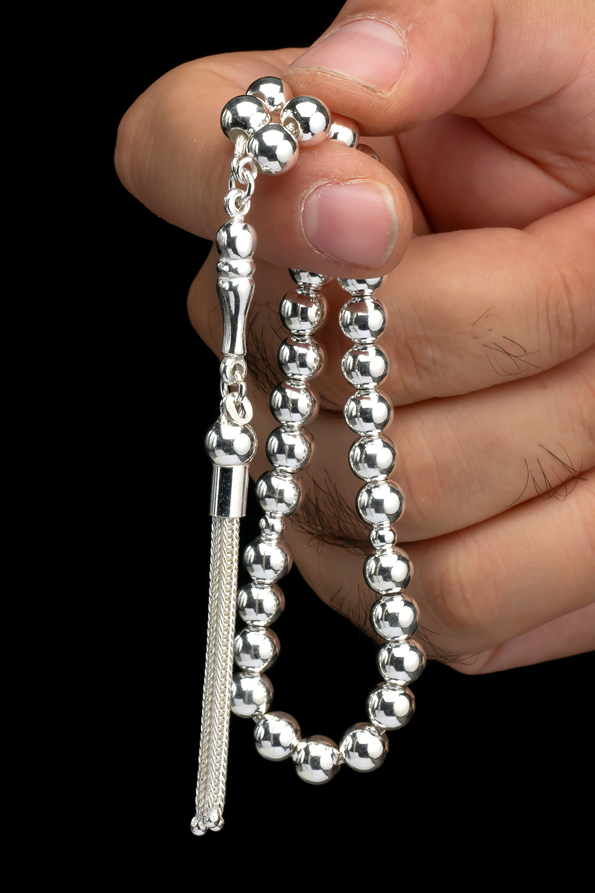Sertifikalı Erkek Gümüş Tespih 7mm 20Gr Küre Kesim