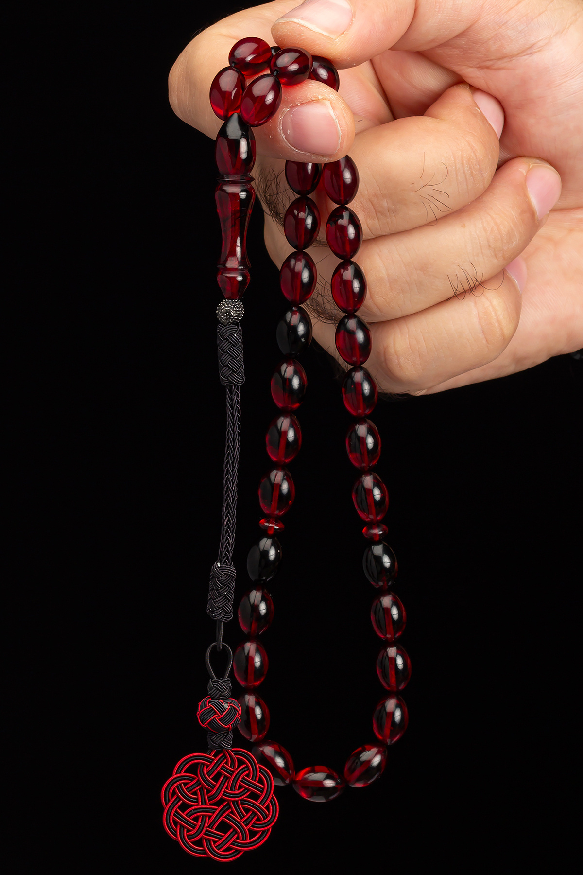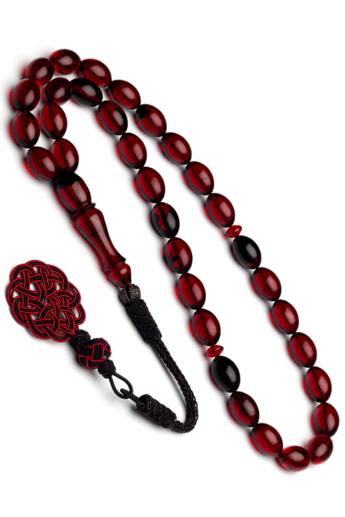 Sertifikalı Trabzon Kazaz Püsküllü 8x12mm Ateş Kehribar Tesbih