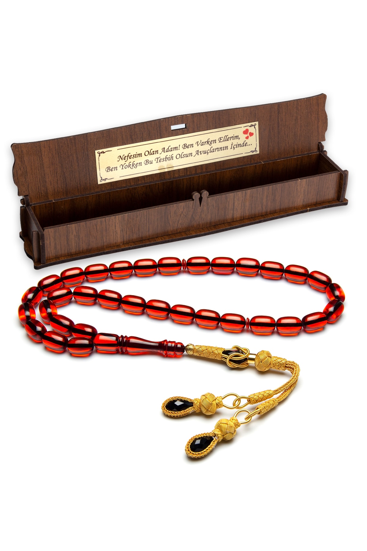 Sevgililer Günü Hediyelik Tesbih, Ahşap Kutulu Tesbih, Ateş Kehribar Tesbih