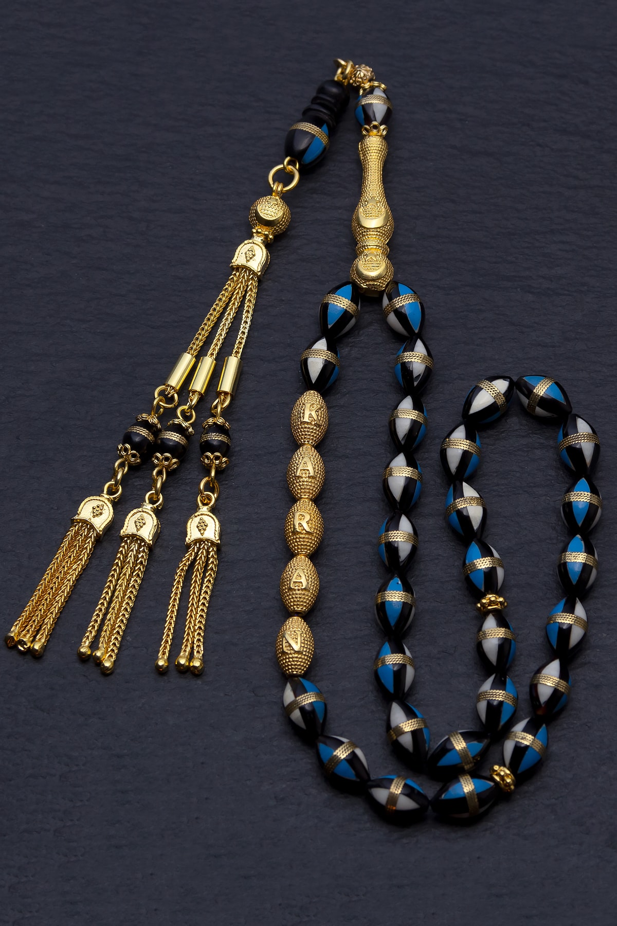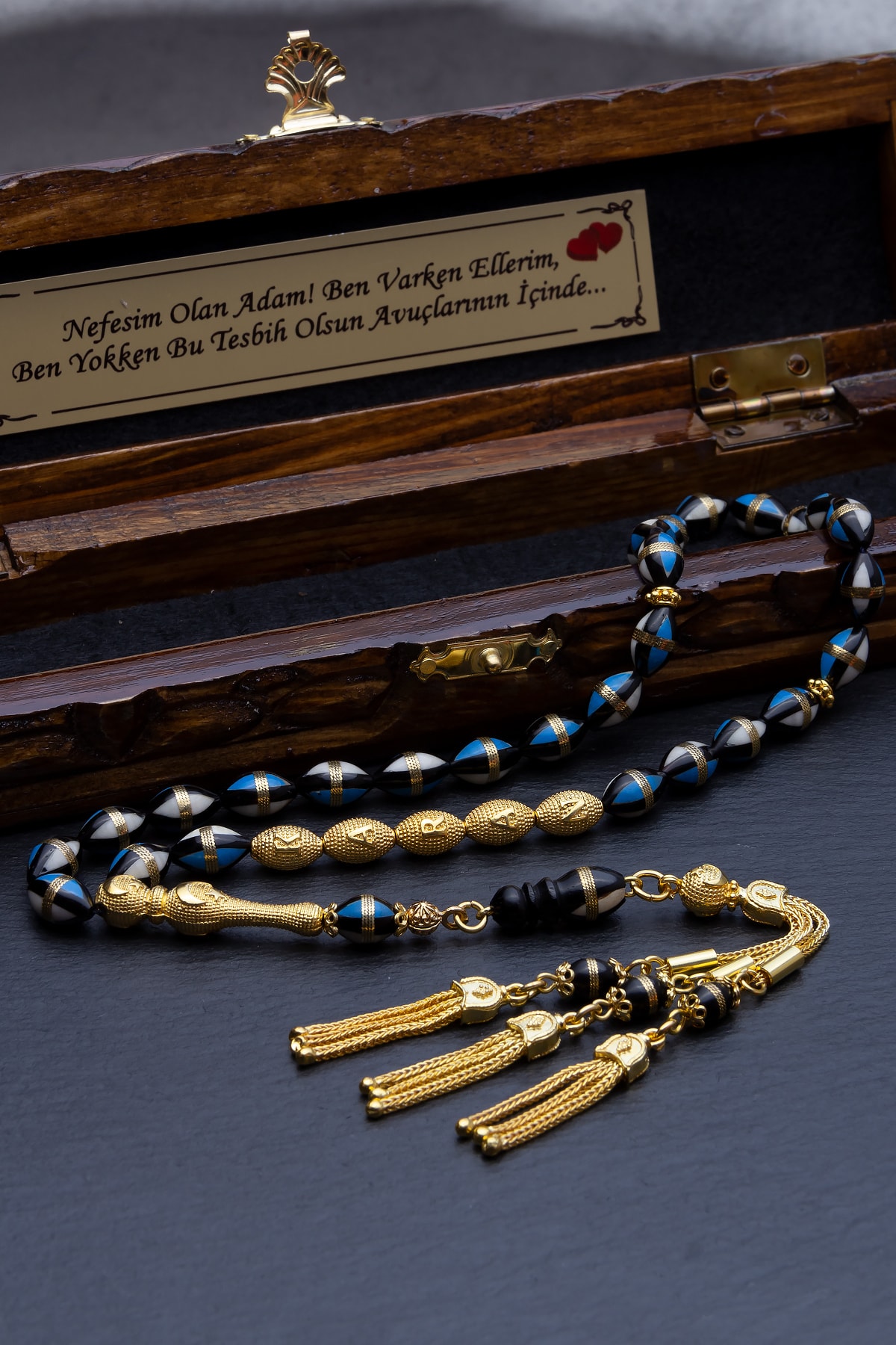 Sevgililer Gününe Özel Altın Kaplama Gümüş Aksesuarlı 7x11mm Sarmal Kuka Tesbih