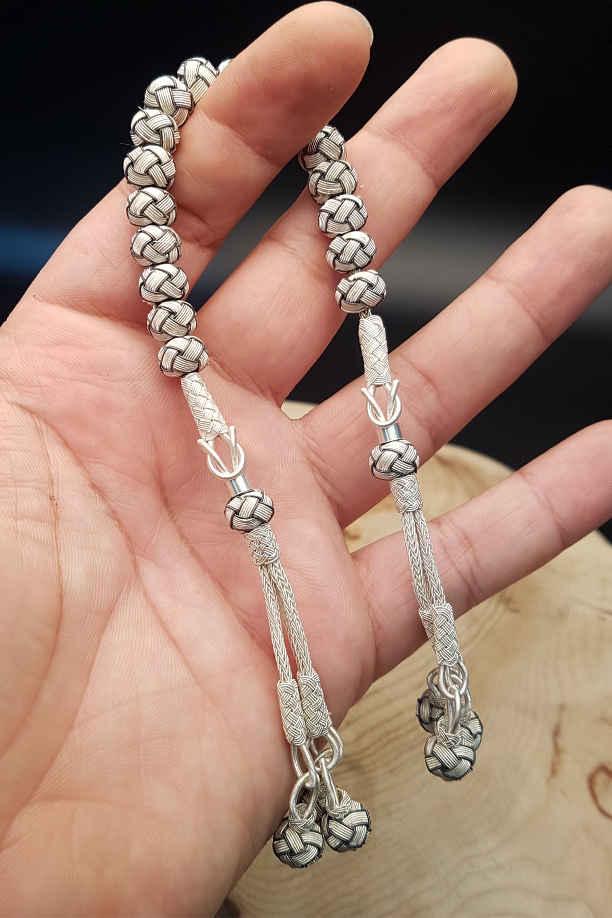 Siyah Beyaz 33 Gr Tamamı 1000 Ayar Gümüş Kazaziye Zaza Tesbih