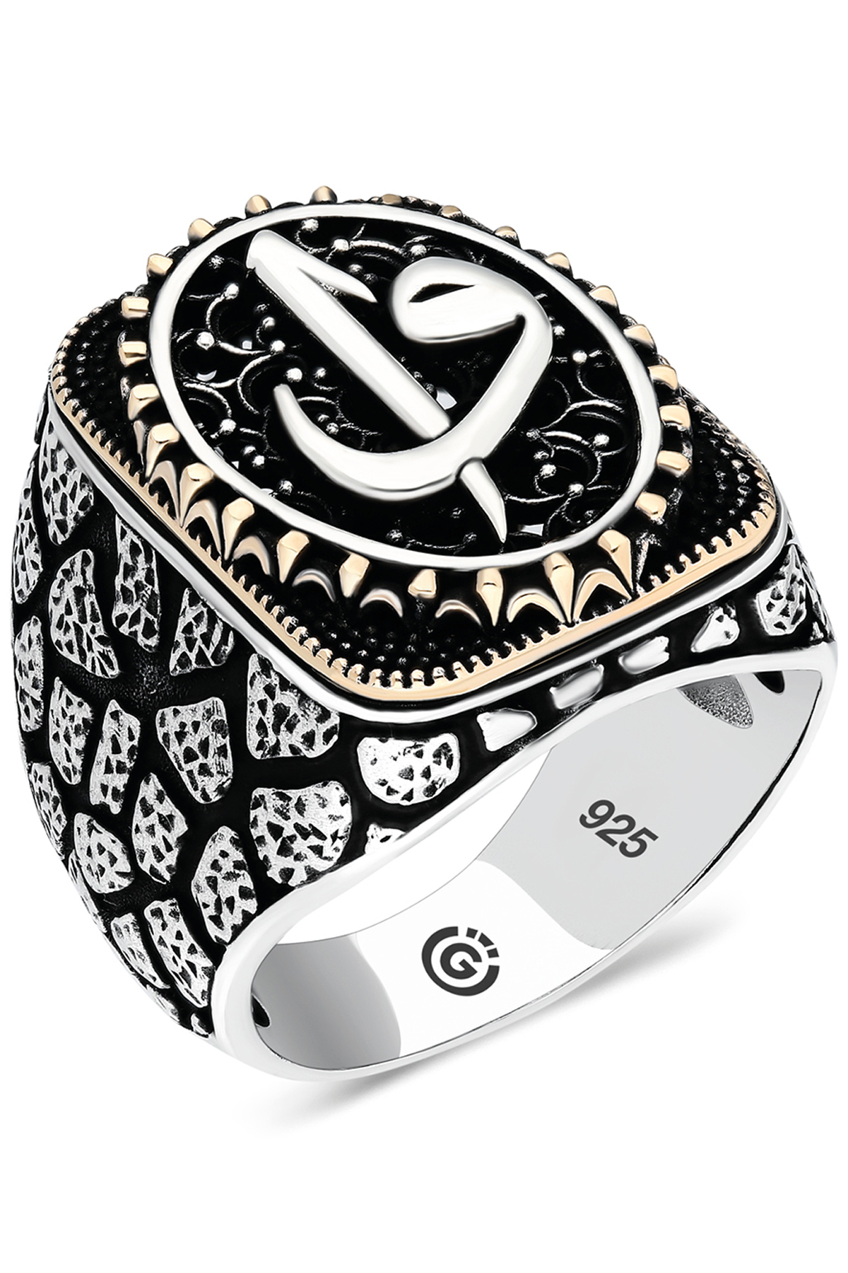Taşsız Elif Vav Yüzük Erkek Yüzük 925 Ayar Gümüş Yüzük