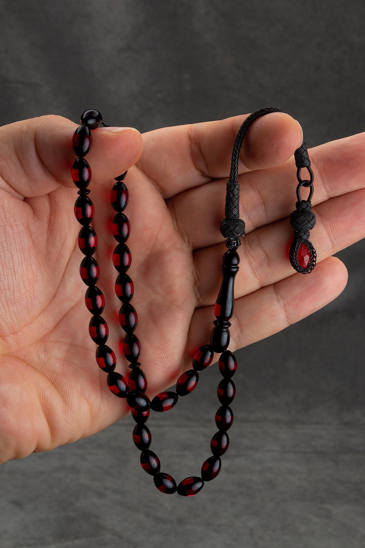 Trabzon El Örmesi Kazaziye Püsküllü 7×11 Kırmızı Sürmeli Kehribar Tesbih