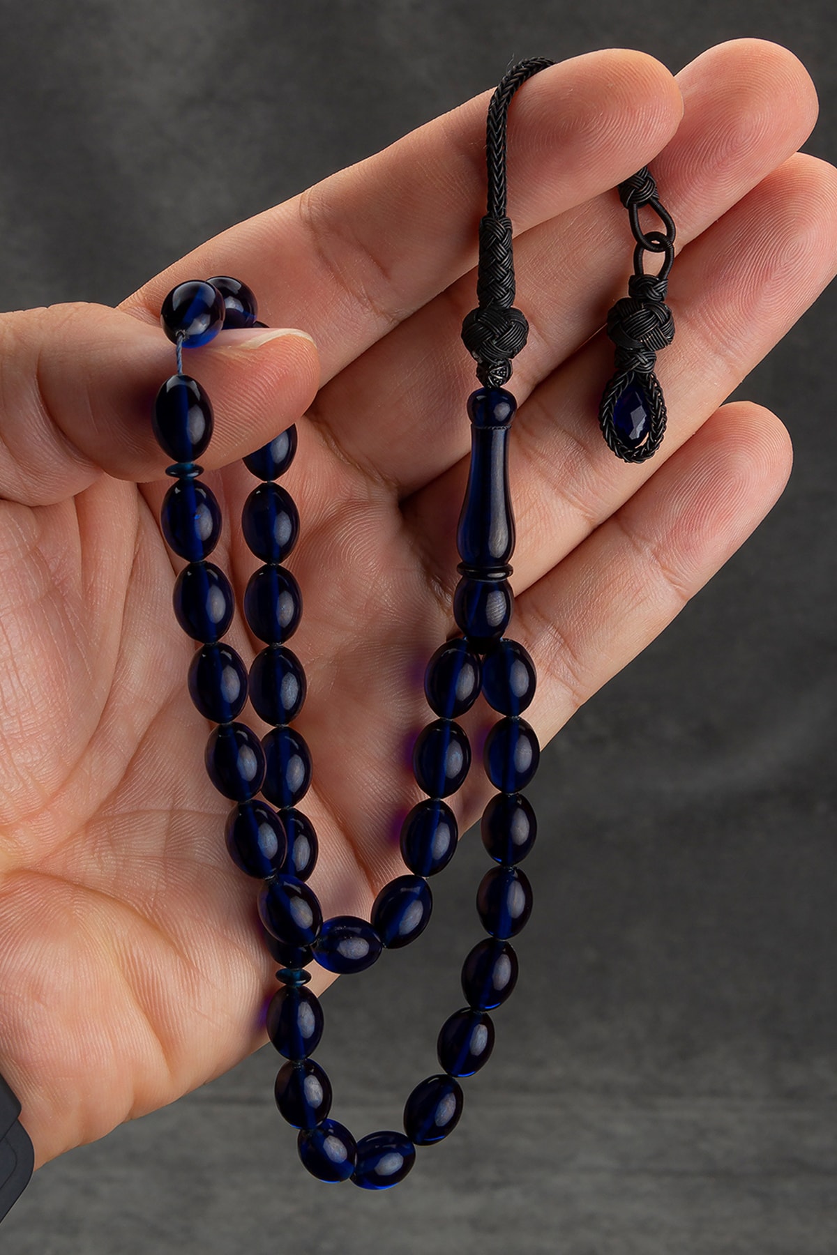 Trabzon El Örmesi Kazaziye Püsküllü 8x12mm Gece Mavisi Ateş Kehribar Tesbih