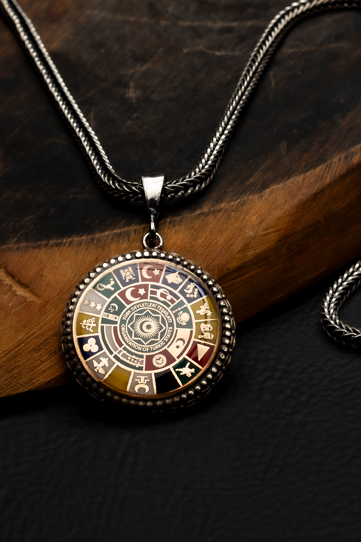 Türk Devletleri Teşkilatı 16 Türk Devleti Erkek Gümüş Kolye 34Gr